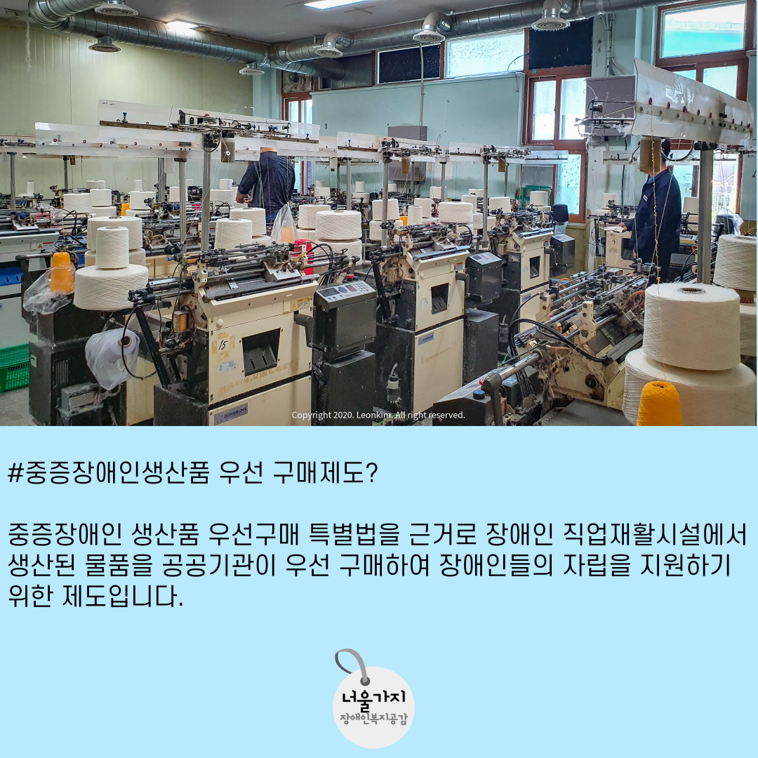 중증장애인 생산품 우선구매 특별법을 근거로 장애인 직업재활시설에서 생산된 물품을 공공기관이 우선 구매하여 장애인들의 자립을 지원하기 위한 제도입니다.