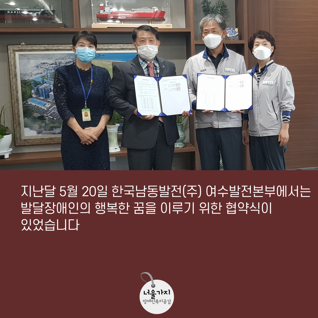 지난달 5월 20일 여수시장애인종합복지관과 한국남동발전(주) 여수발전본부과의 협약식이 있었습니다.