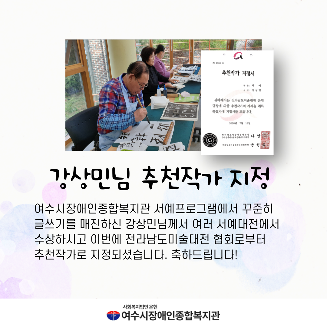 여수시장애인종합복지관 서예프로그램에서 꾸준히