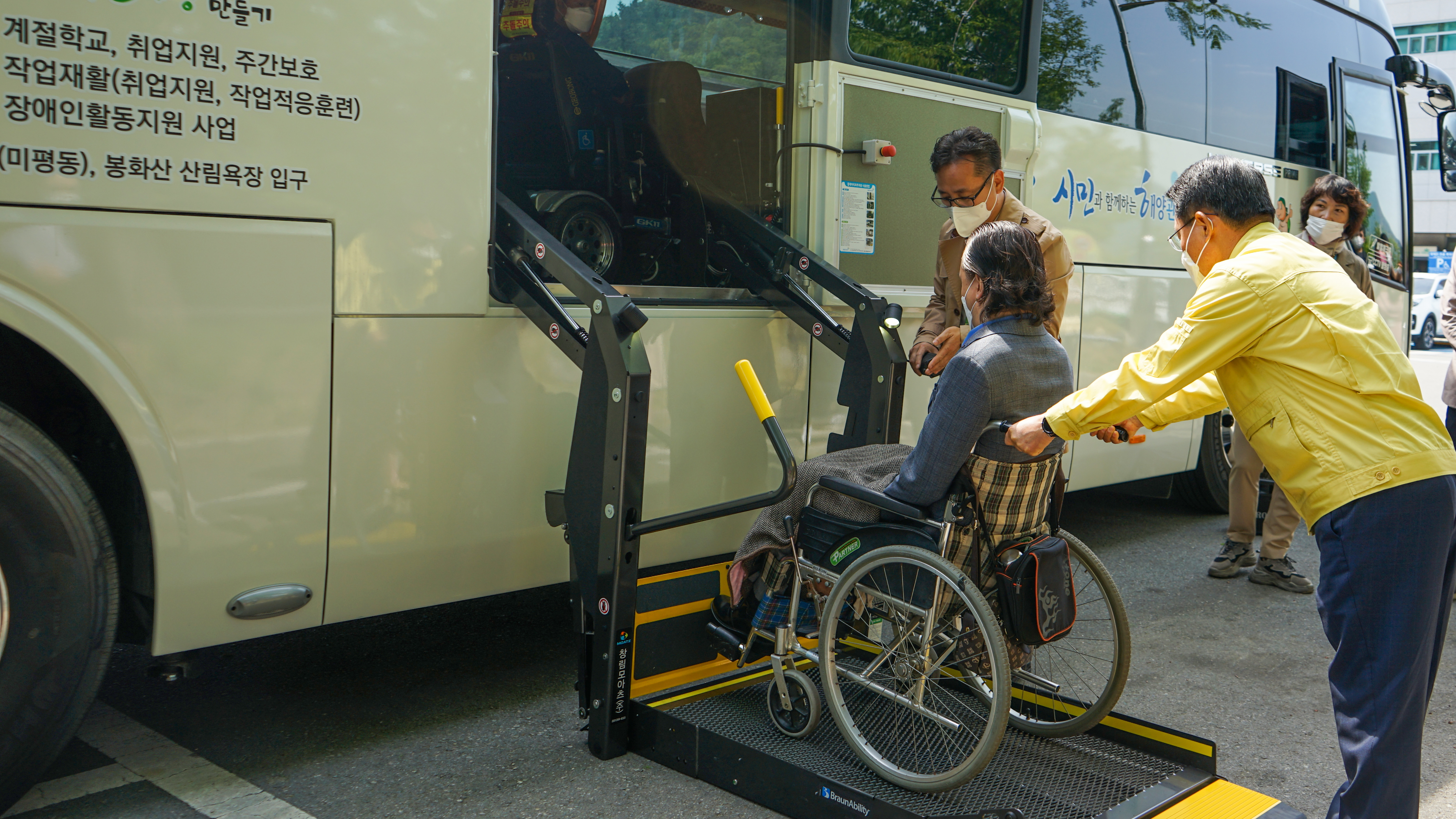 장애인의 이동편의를 위한 복지관 리프트 버스를 새로 구입해주셨습니다.
