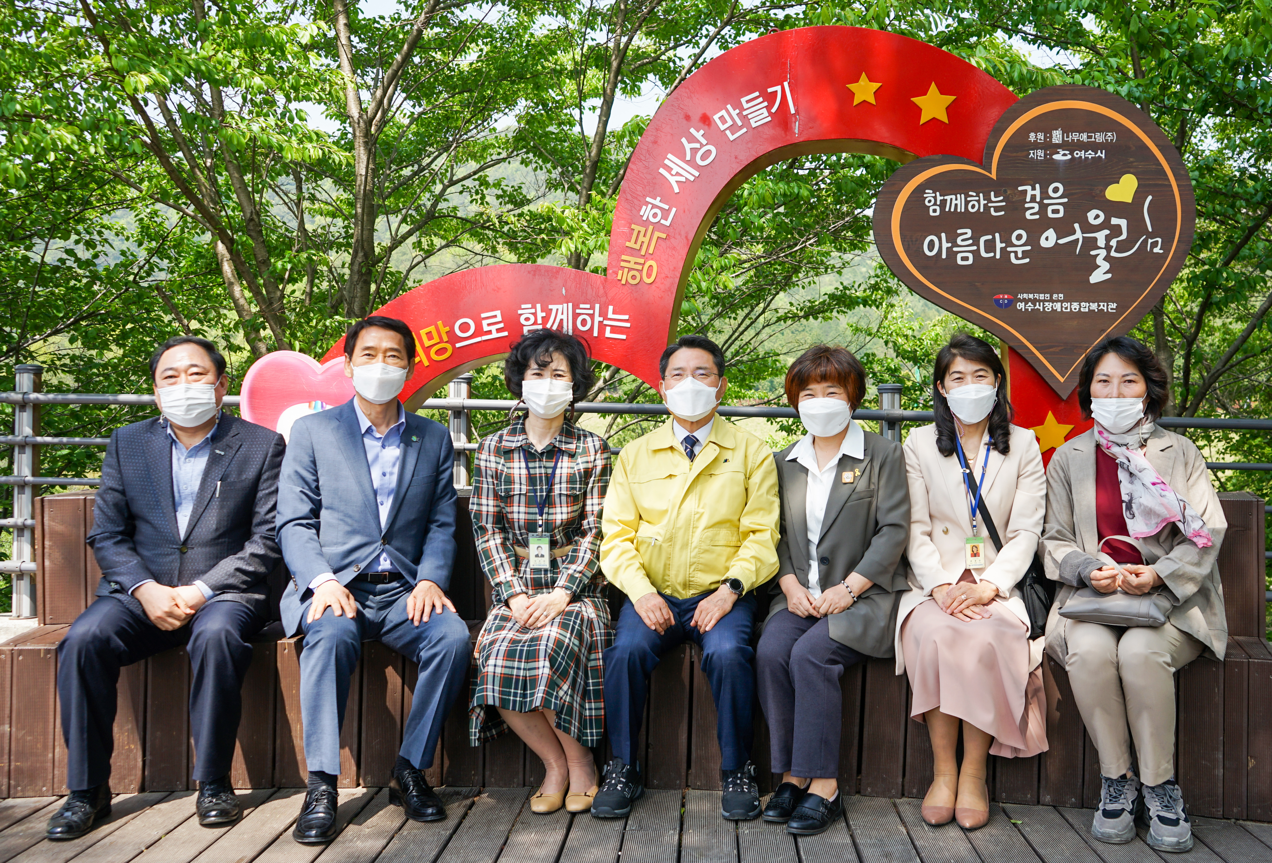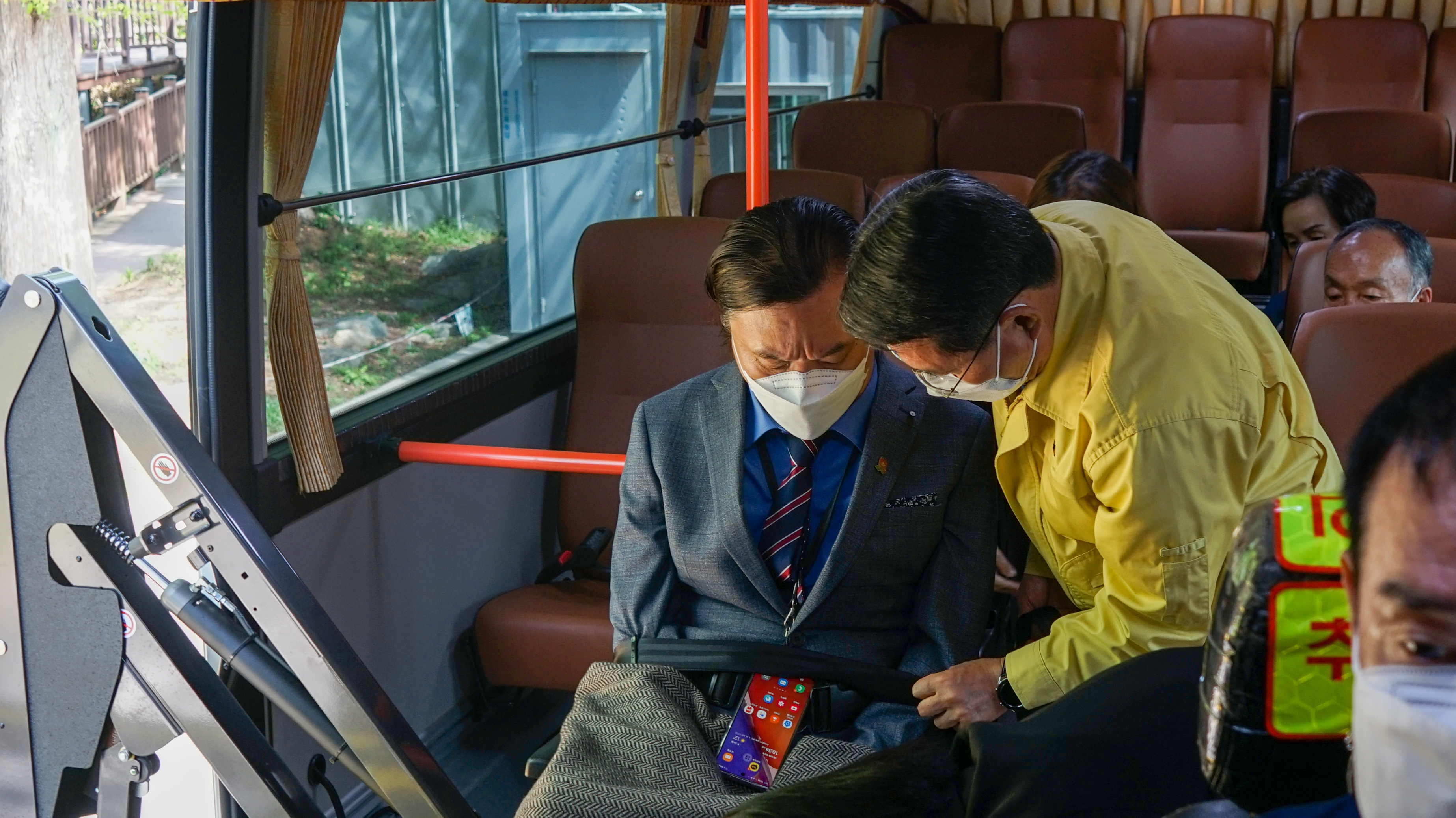 만나시는 이용자 한분한분 인사드리고, 무장애 나눔숲 봉화산산림욕장과 중증발달장애인을 위한 단기거주시설 건립 현장을 둘러보셨습니다.