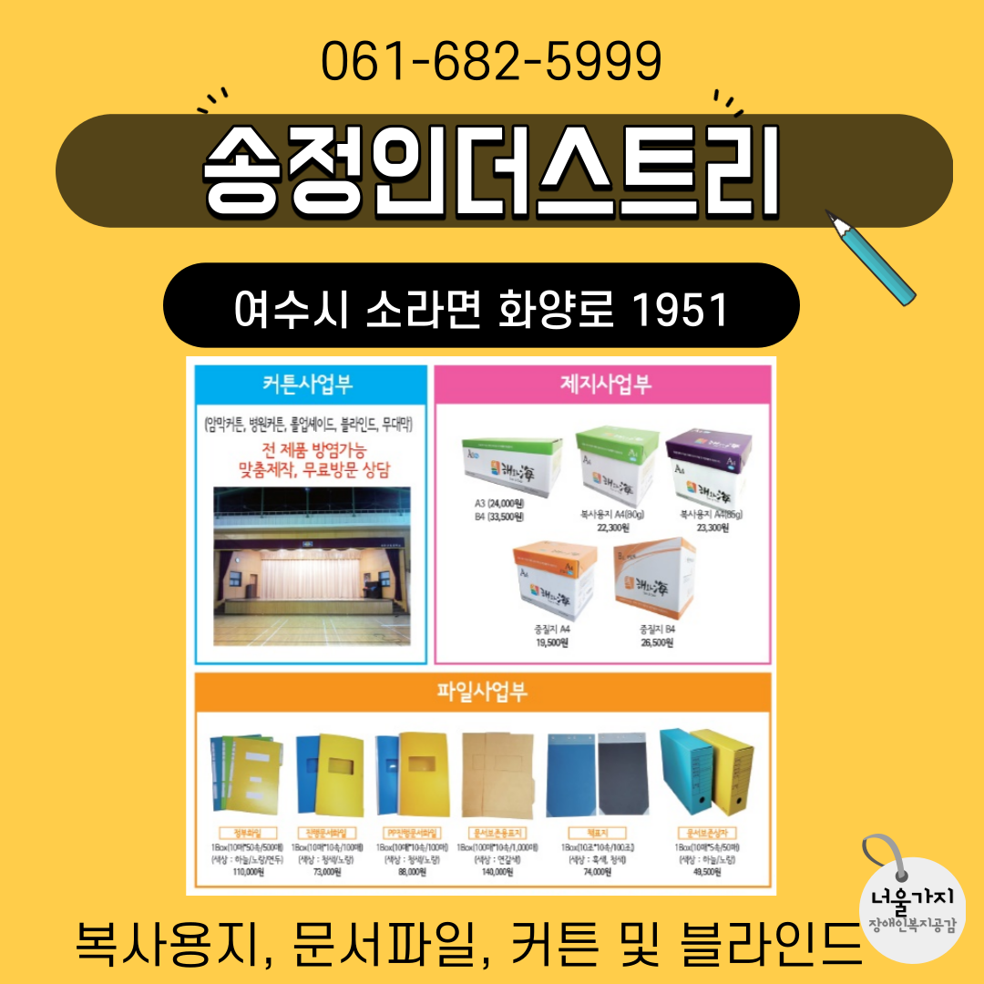 송정인더스트리/복사용지,문서파일,커튼및블라인드/061-682-5999